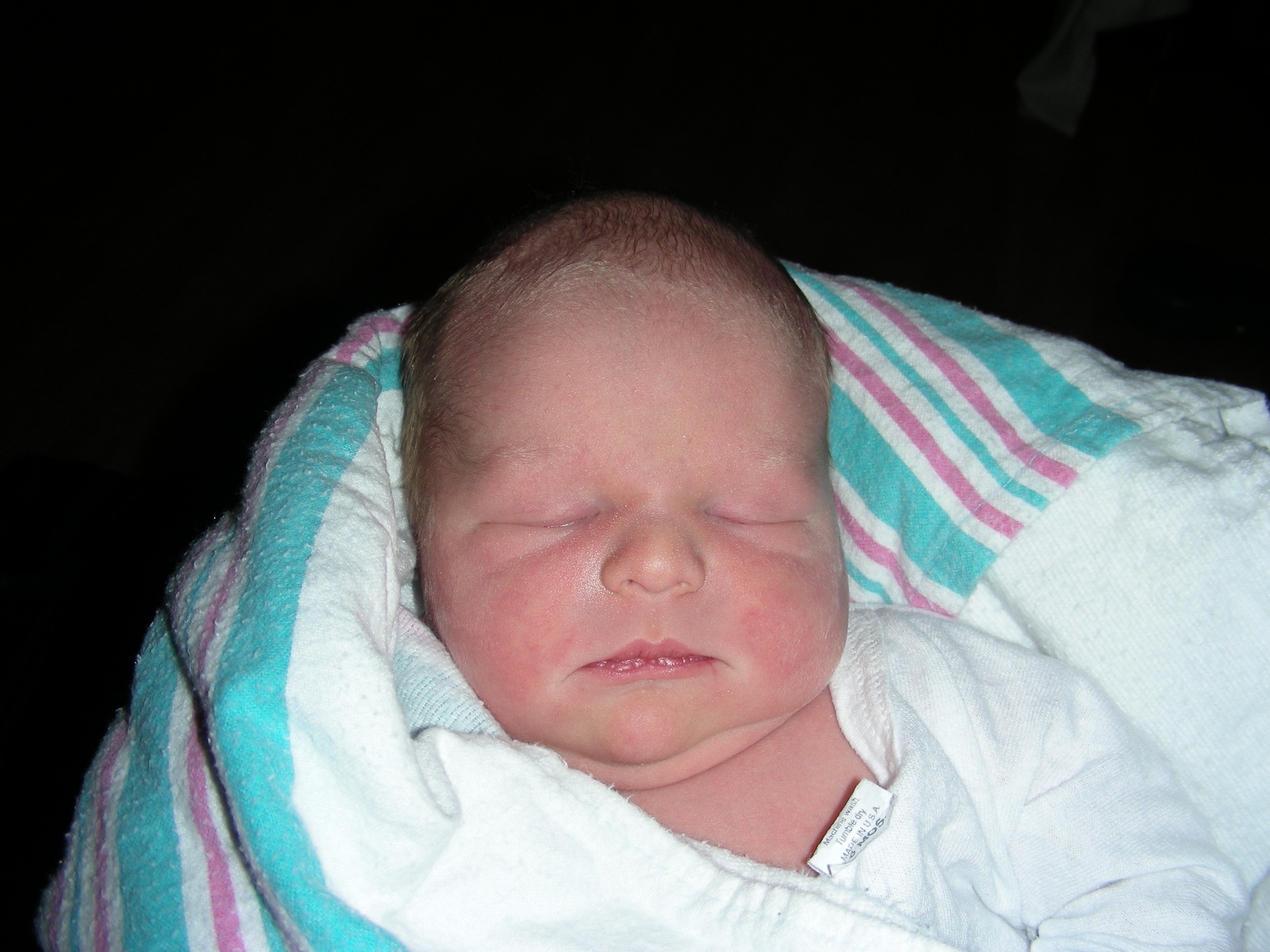 Ryan Walter Martin was born on Saturday, May 17th at 4:28 AM. He weighed in at 7 lbs 9 oz and measured 20.5″ in length. Everything went very well in delivery, and he was able to come home with us on Sunday evening. Ryan gets his middle name from his paternal Grandpa Walt. Both baby and mom are doing very well. He’s a beautiful little boy! (You can get a full-size image by clicking on one)